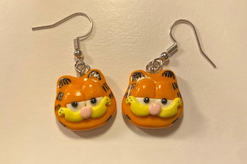 Custom Garfield Earrings I made for a customer. I am so proud of how they turned out!!